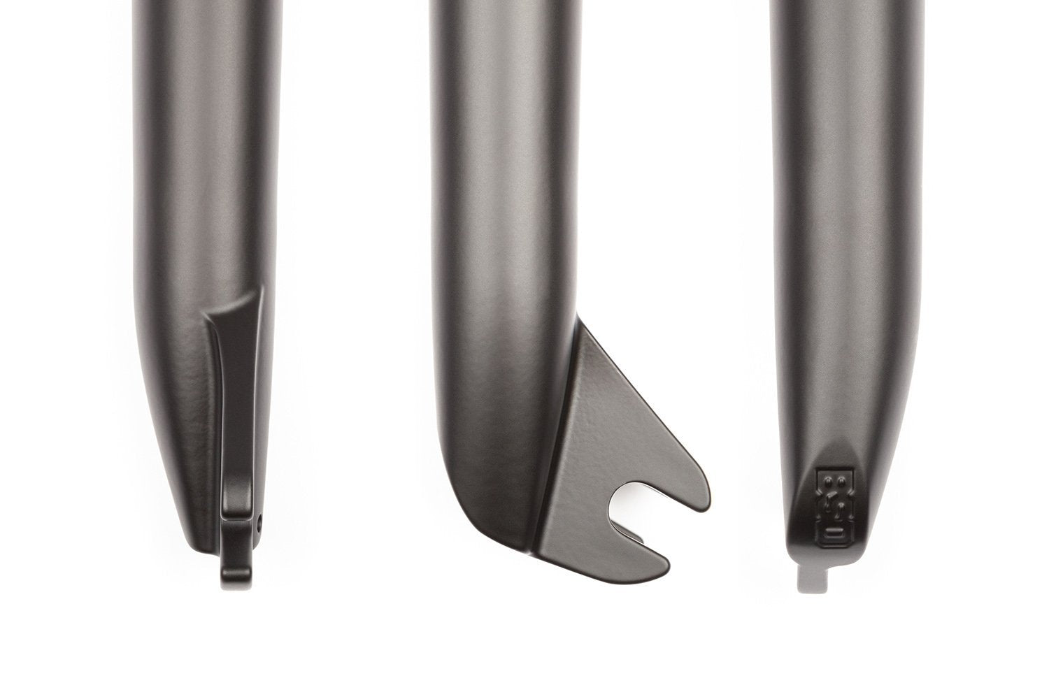 Constructed from heat-treated chromoly tubing that's been beefed up in high stress point areas for maximum strength and ready to take some serious riding abuse. Featuring a CNC machined 1-pc steerer tube with integrated bearing race, 7075-T6 aluminum compression bolt, tapered and butted fork legs with 2.4" tire clearance and super slick investment cast dropouts.