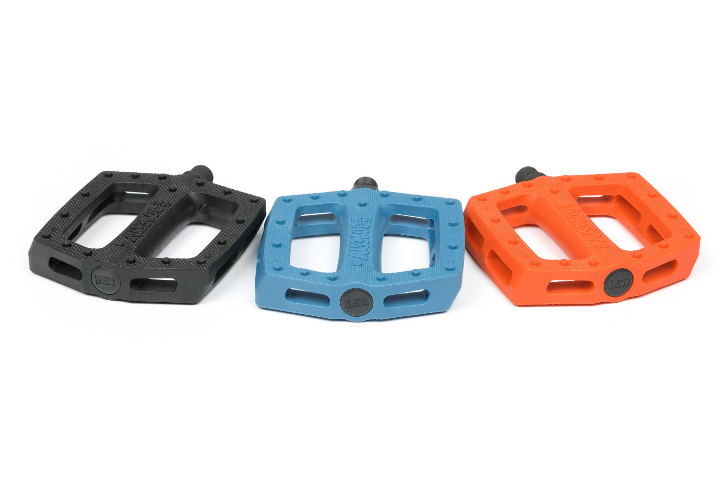 The BSD Jonesin' pedal was designed using the same basic principles as the BSD Safari pedal of extra hexagonal studs and a true dual concave DX style platform but with a slimmer body for a closer to the axle feel. The pedal also features different logos on each face to help when choosing your grind side...