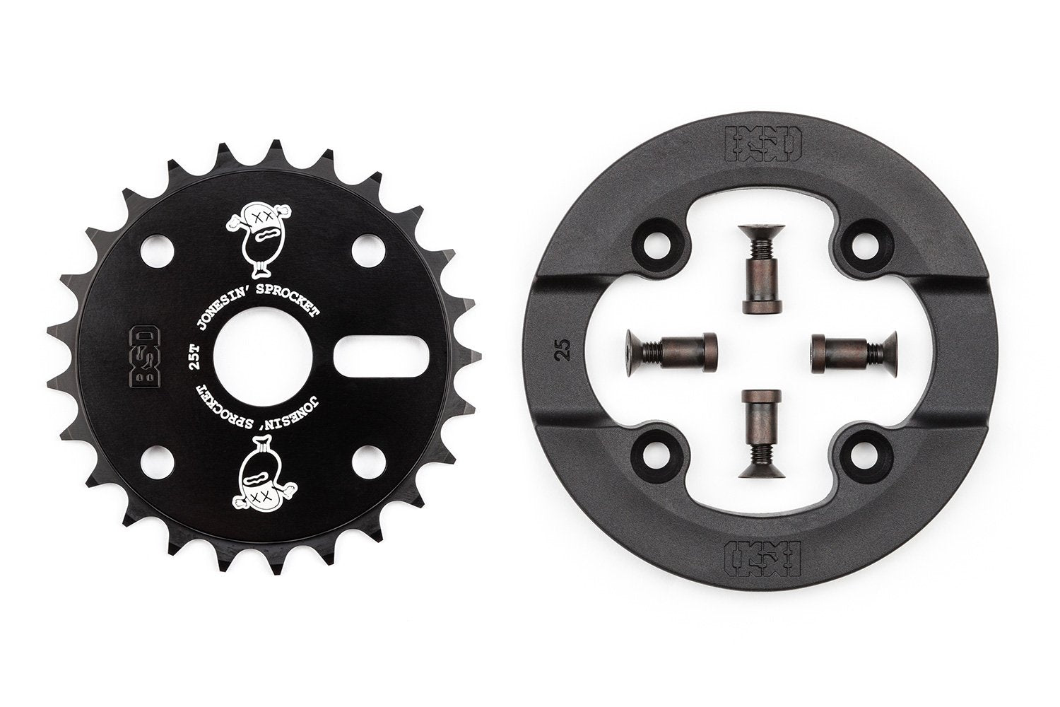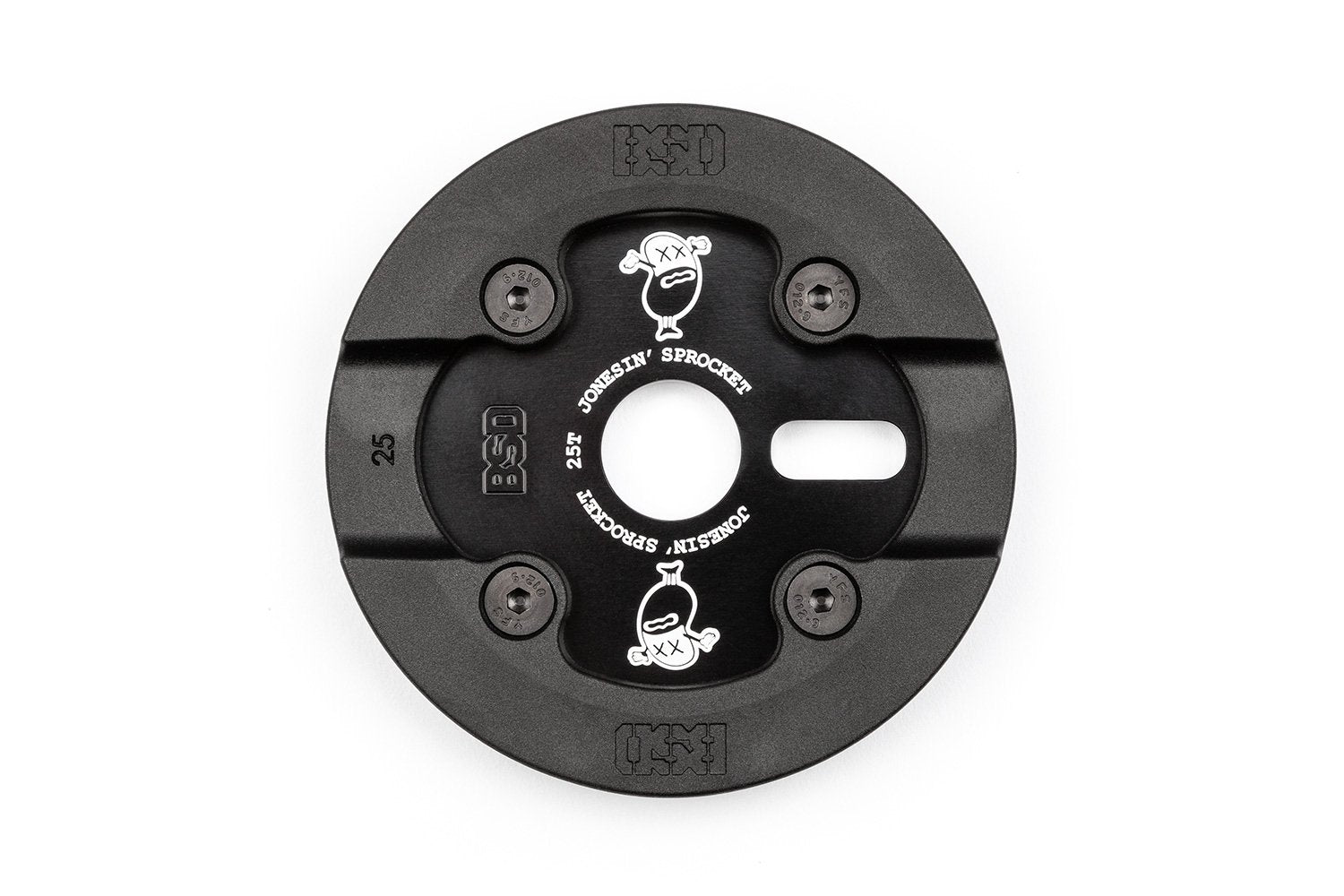 Sam Jones chose the plastic guard from the Barrier sprocket and coupled it with a classic look solid chainring to create the new Jonesin’ sprocket. 25t only for the rail crew...