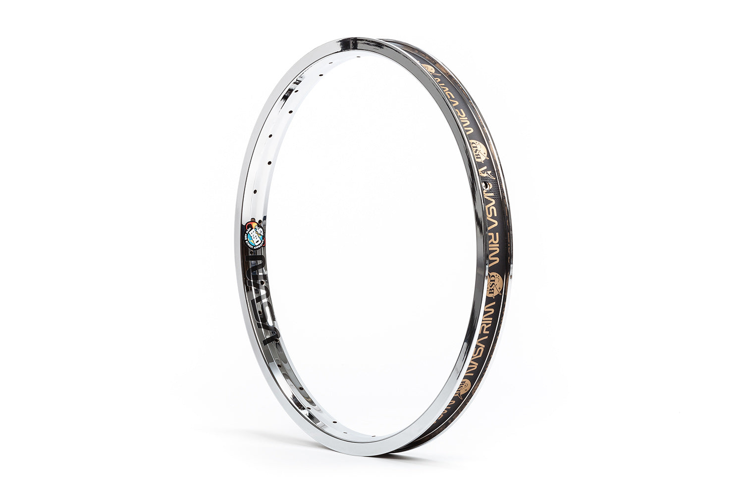 The NASA rim is designed to be stiff both laterally and radially. Based on an I-beam design with extra thick tapered sidewalls, tapered spoke seats, cross over lacing and a curved inner strut.