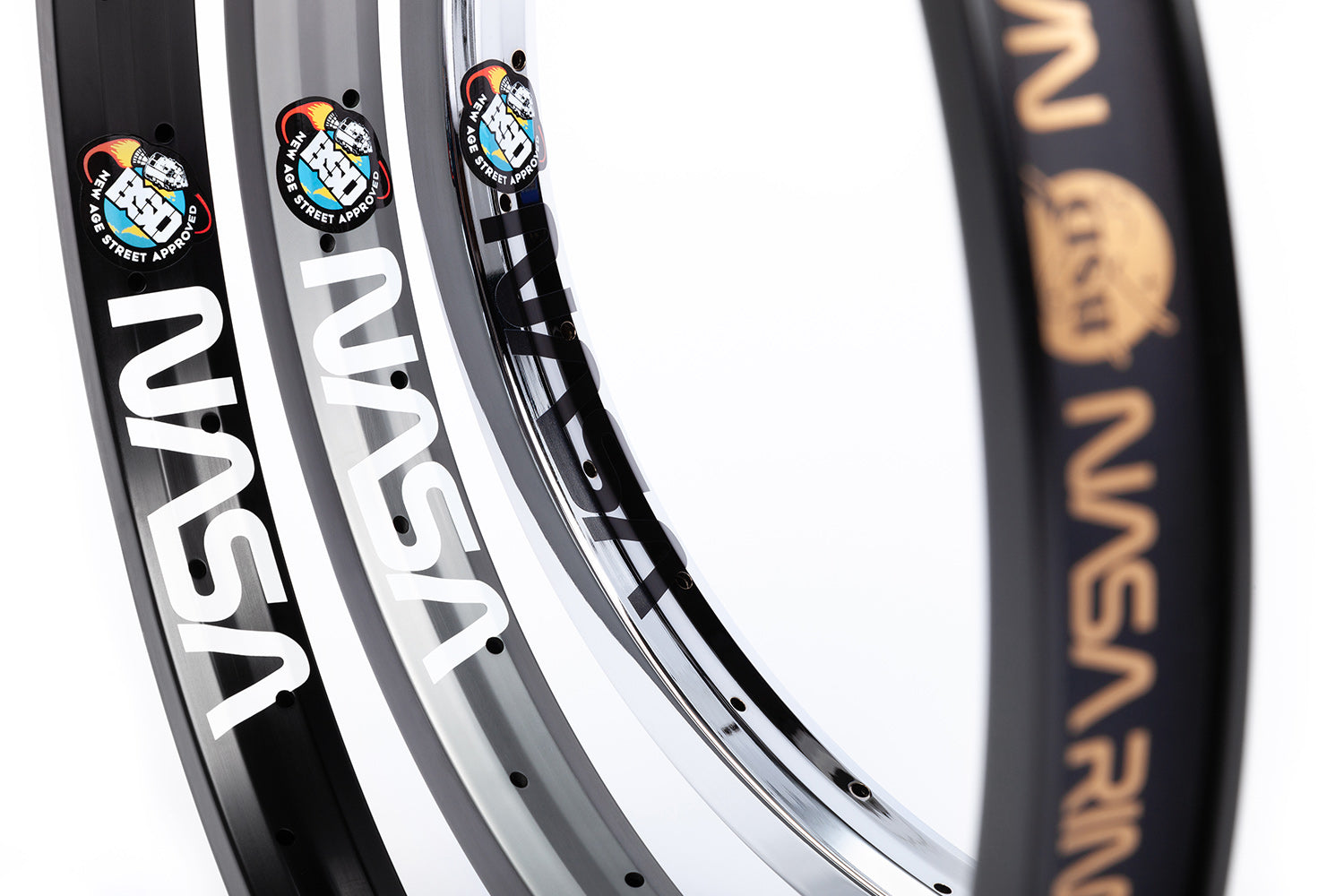 The NASA rim is constructed from space age 6066-T6 aluminium which is much stronger than the cheaper 6061 alloy traditionally used in most rims (+34% tensile strength vs 6061-T6). Intergalactic...