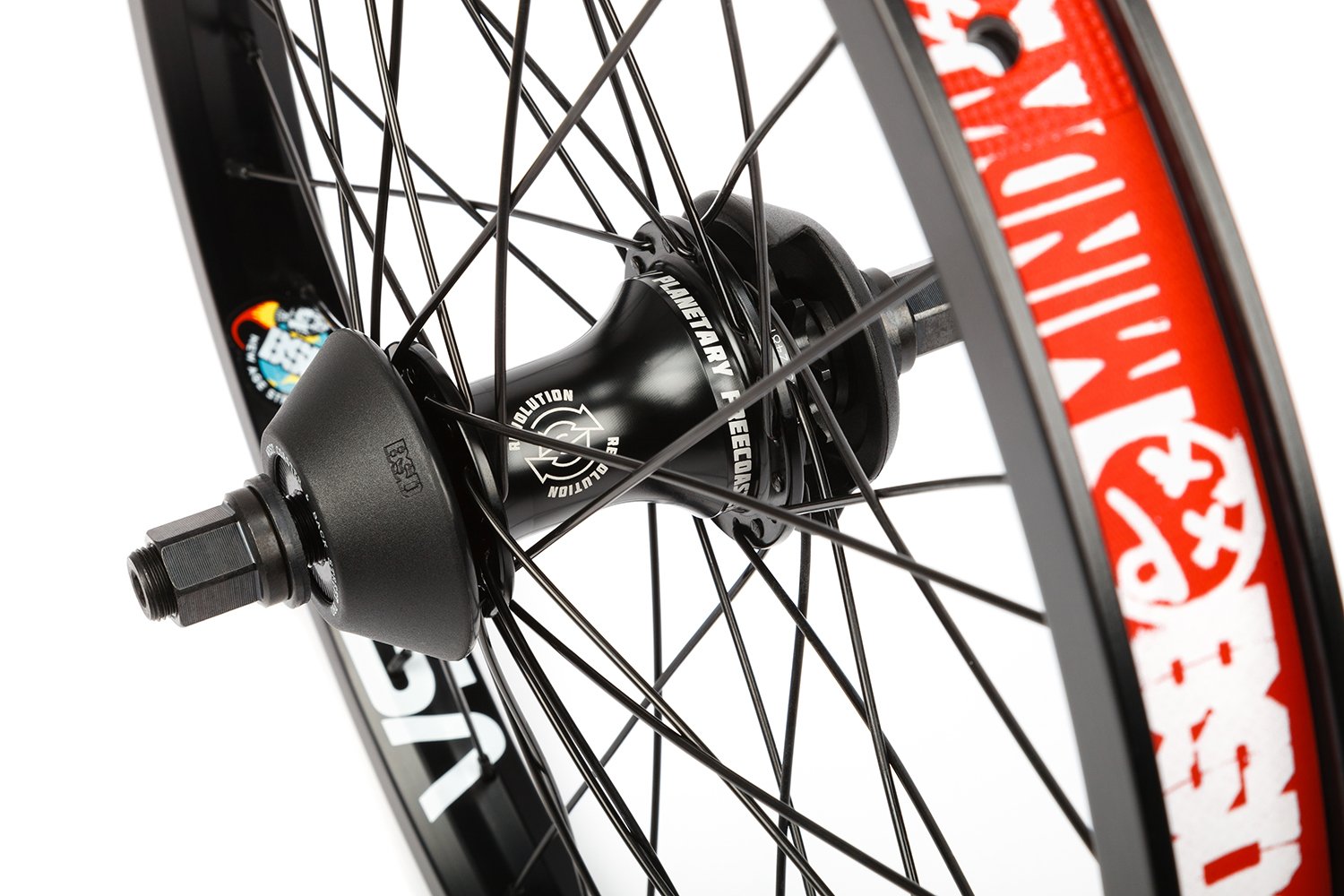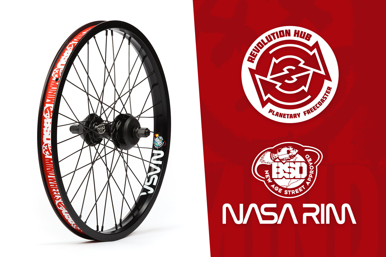 BSD's latest complete rear freecoaster wheel built around the new lightweight Revolution Planetary freecoaster hub and super tough BSD NASA rim, using BSD spokes and rim tape.
