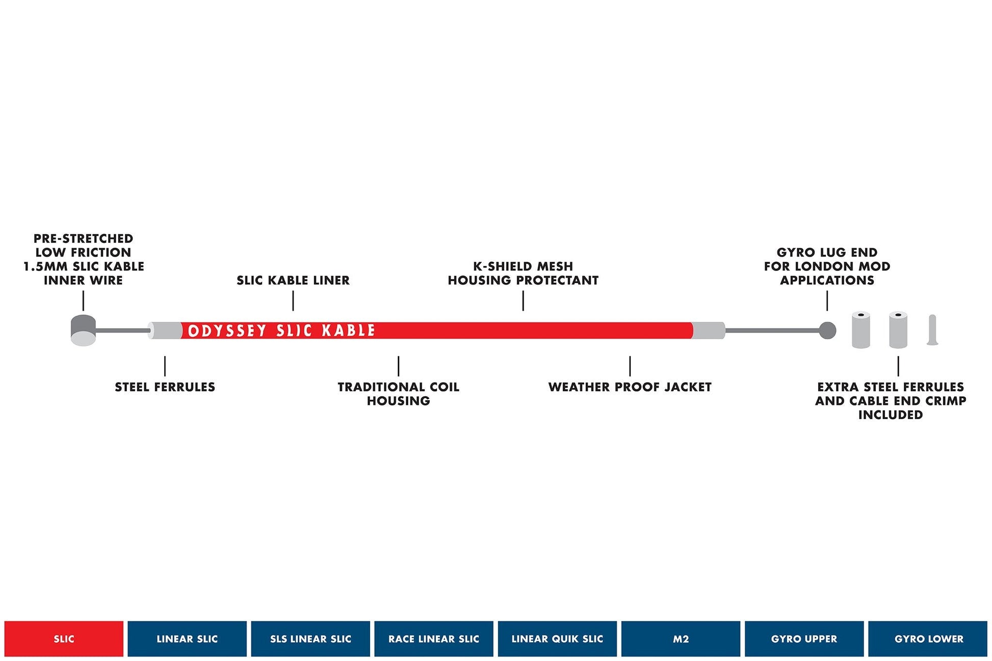 The original Slic Kable® cable from Odyssey has been the go-to cable in BMX for over 30 years. The legendary smooth pull of this cable is thanks to our low friction innerwire and our Slic® cable liner.