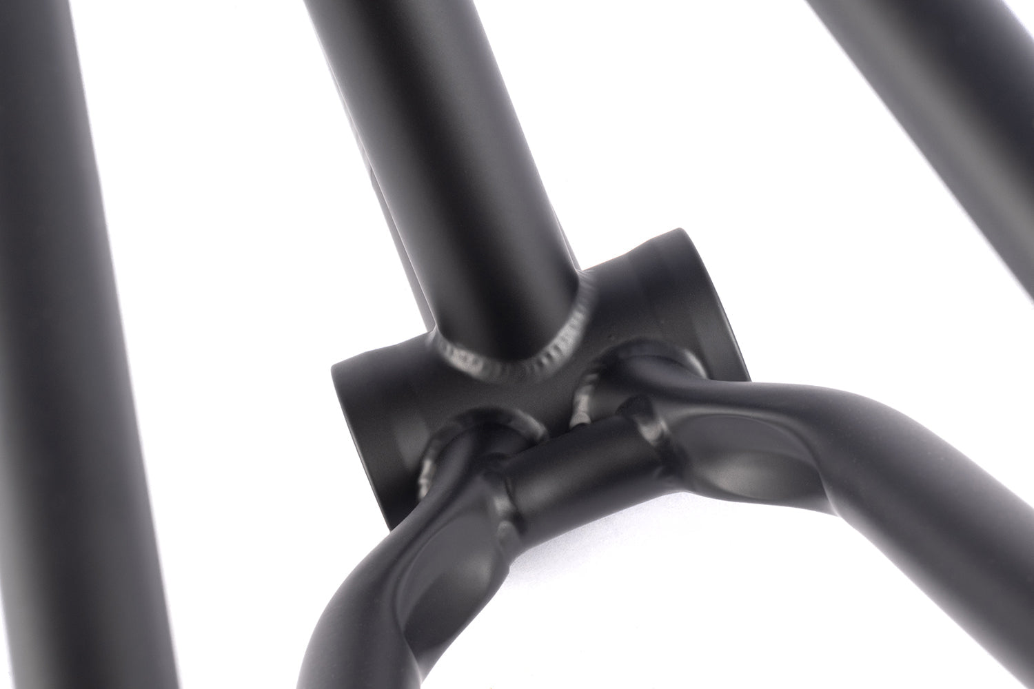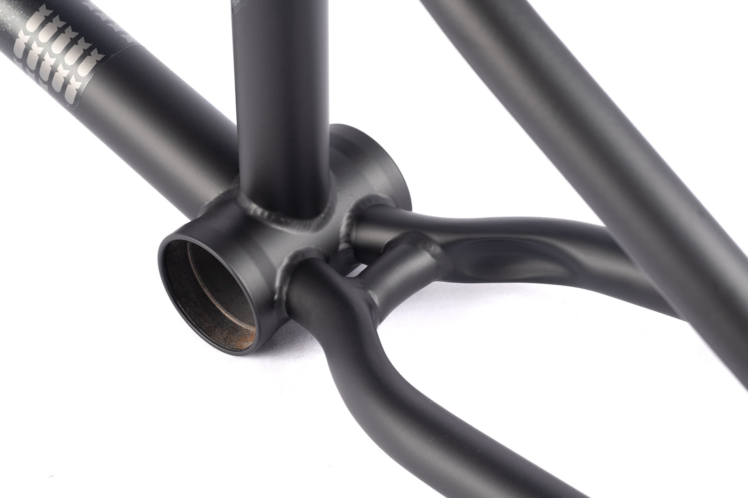 The latest version of Dan Paley's signature BSD Soulja frame, updated using BSD's new Superscoop chainstay tubing for extra tyre clearance when your wheel is slammed. This frame features a 75.2 degree headangle, 8.8” standover, 12.8 – 13.2” rear end and invest cast dropouts with built in chain tensioners.