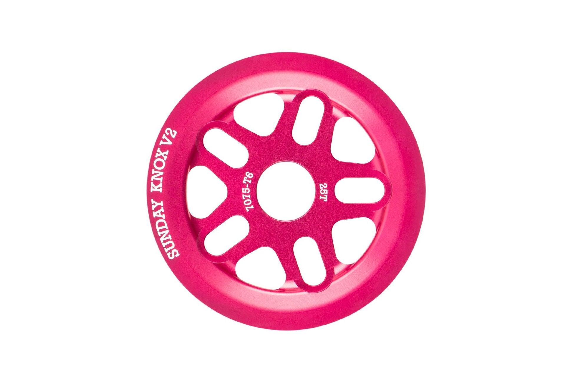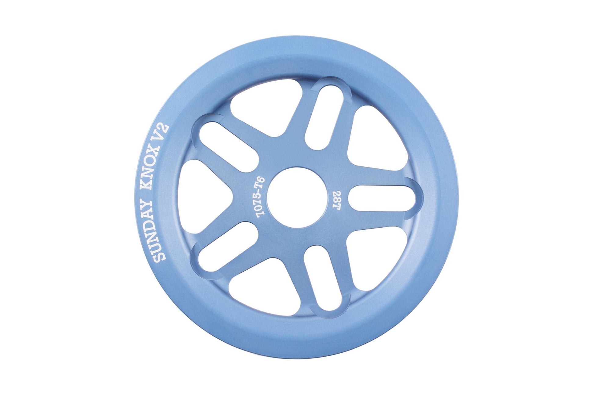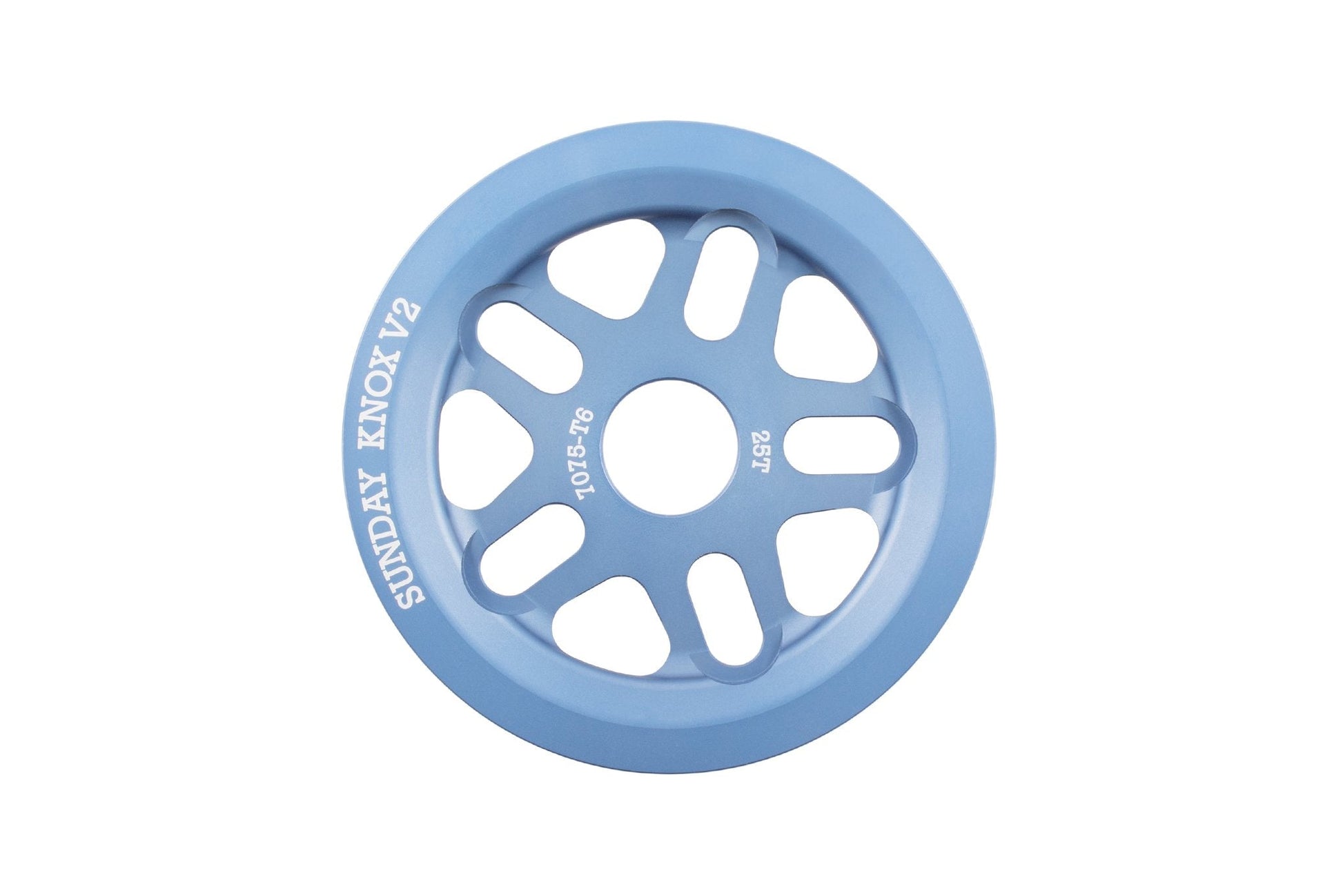The Sunday Knox V2 is made of 7075-T6 aluminum and continues the legacy of their original guard sprocket. Featuring refined machining geometry for a sleeker look, and designed to work with and protect all chains from unwanted impact.