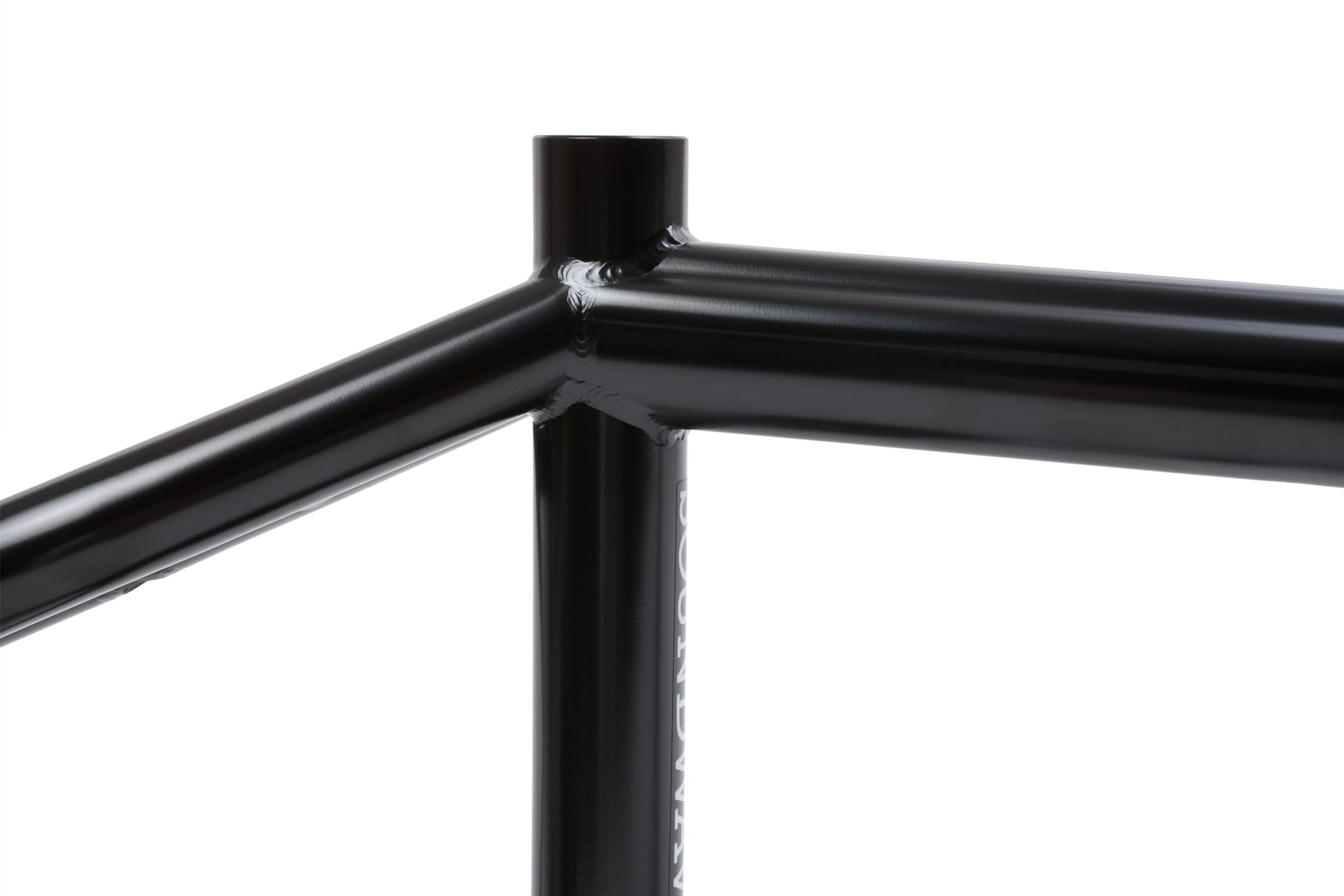 The Mid BB and Headtube is machined to its absolute minimum without sacrificing strength or durability. The machining happens after welding for a precision bearing fit. -